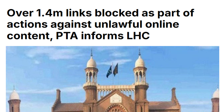 The Pakistan Telecommunication Authority (PTA) has informed the Lahore High Court that it has blocked more than 1.4 million web links and URLs in its ongoing drive against "unlawful online Read More ...